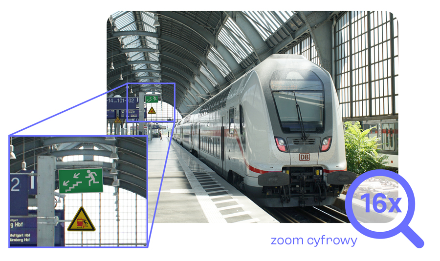 Wysoka rozdzielczość - 12MpxMaksymalna ilość detali i szerokie pokrycie obrazuRozdzielczość 12 Mpx (4480 × 2512) umożliwia rejestrację obrazu o wyjątkowo wysokiej szczegółowości. Kamera oferuje kilka razy większą liczbę pikseli niż standardowe modele Full HD, co pozwala objąć większy obszar i jednocześnie zachować wysoką ostrość drobnych elementów – takich jak twarze, numery tablic rejestracyjnych czy drobne obiekty w tle. Tak wysoka rozdzielczość znacząco zwiększa skuteczność dozoru i pozwala na efektywne wykorzystanie funkcji cyfrowego powiększenia bez utraty jakości obrazu. |