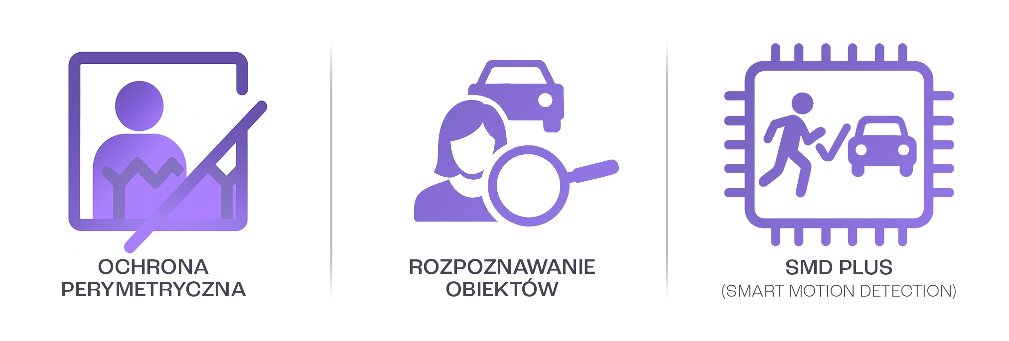 - Funkcje Ai: Inteligentna detekcja ruchu, Ochrona perymetryczna