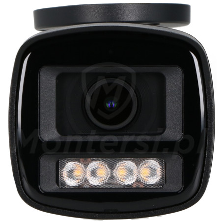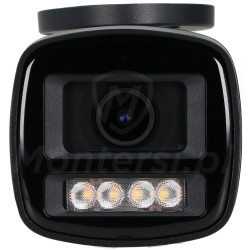 Kamera wykorzystuje oświetlacz LED, który umożliwia skuteczne doświetlanie sceny nawet w całkowitej ciemności. Oświetlacz ten generuje światło białe o zasięgu do 50 metrów, co w połączeniu z technologią NightColor 2.0 pozwala na rejestrowanie kolorowego obrazu także w nocy. Dzięki zastosowaniu białego światła, obraz nocny jest bardziej naturalny, co ułatwia identyfikację detali – takich jak kolor ubrań, pojazdów czy elementy otoczenia – znacznie skuteczniej niż w tradycyjnych kamerach z podczerwienią. To rozwiązanie idealnie sprawdza się w miejscach wymagających wysokiej jakości nagrań przez całą dobę.