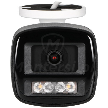 Kamera jest również wyposażona w stałoogniskowy obiektyw, o szerokości ogniskowej 2.8 mm (F1.6). Zapewnia on stosunkowo szeroki kąt widzenia (94° w poziomie / 52° w pionie), dzięki któremu kamera jest uniwersalna i sprawdza się świetnie w realizacji funkcji podglądu ogólnego. Przykładowo, umieszczona w rogu stosunkowo niedużego pomieszczenia, powinna być w stanie obserwować je całe. Dodatkową zaletą kamer ze stałoogniskowymi obiektywami jest zwykle lepsza jakość obrazu, w porównaniu do ich odpowiedników z obiektywami regulowanymi.
