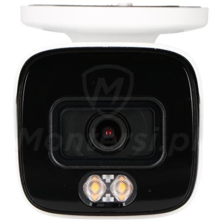 Cechą charakterystyczną kamery jest wbudowany oświetlacz IR i oświetlacz LED. W standardowym trybie pracy, gdy kamera pracuje w trybie nocnym, włączony jest oświetlacz IR. Gdy kamera wykryje ruch człowieka, uruchamia oświetlacz LED co pozwoli generować kolorowy obraz zdarzenia. Dzięki czemu materiał wideo w kluczowych momentach nadzoru jest najwyższej jakości, co może pomóc w identyfikacji intruza. Użytkownik ma również możliwość ustawienia na stałe oświetlacza IR lub oświetlacza LED do pracy w trybie nocnym. Skuteczny zasięg oświetlacza IR i oświetlacza LED wynosi do 50 m.