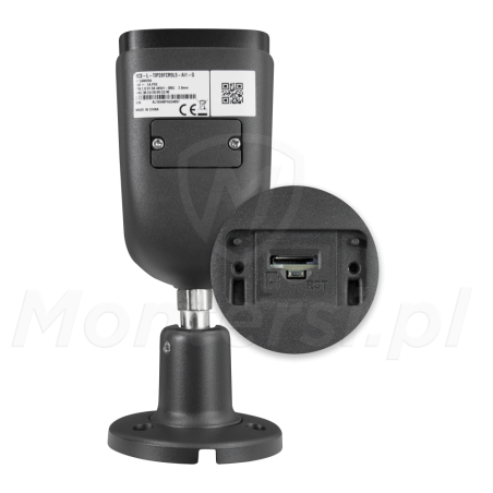 Kamera jest również wyposażona w gniazdo na kartę microSD, o maksymalnej pojemności 512 GB. Karta służy jako zapasowe miejsce pamięci, które można wykorzystać do tworzenia lokalnych kopii nagrań. Dodatkowo kamera z zastosowaną kartą może pracować w pełni autonomiczne, tworząc miniaturowy system monitoringu. W takim systemie wszystkie nagrania są zapisywane na karcie i jest on obsługiwany z poziomu przeglądarki internetowej.