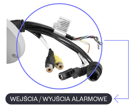 Wejścia / wyjścia alarmoweIntegracja z urządzeniami innych systemówDodatkową zaletą kamery są wbudowane 1 wejście i 1 wyjście alarmowe. Służą one do integracji z urządzeniami systemu alarmowego, kontroli dostępu lub automatyki domowej, umożliwiając realizację zaawansowanych funkcji sterowania: