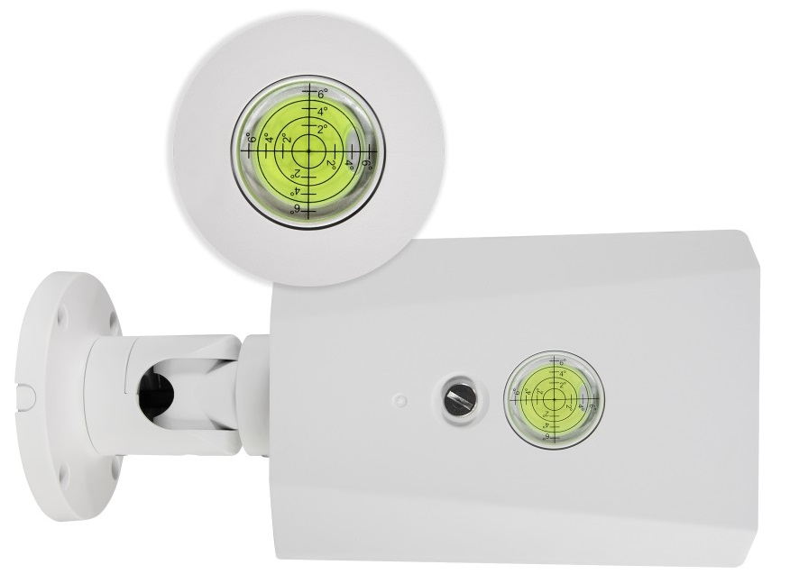 Wbudowana poziomicaPrecyzyjne ustawienie kameryKamera została wyposażona w zintegrowaną poziomicę z siatką kątową, która znacząco ułatwia jej precyzyjne ustawienie podczas montażu. Oznaczenia kątowe umożliwiają szybkie i dokładne wypoziomowanie urządzenia oraz ustawienie odpowiednich osi dla każdego z trzech przetworników. To praktyczne rozwiązanie eliminuje konieczność użycia dodatkowych narzędzi i pozwala na optymalne pokrycie pola obserwacji. |