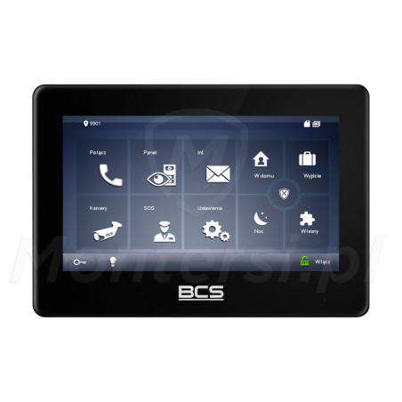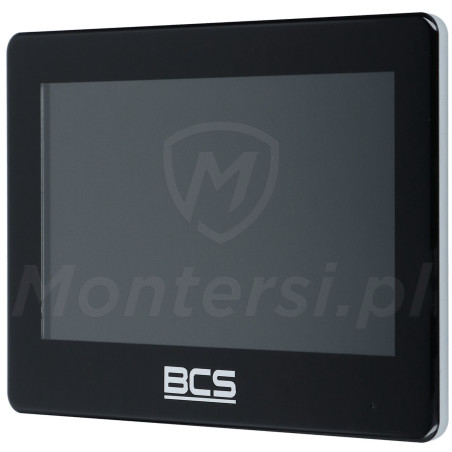 Monitor zbudowano w oparciu o dobrej jakości, dotykowy ekran pojemnościowy TFT, o przekątnej 7". Wyświetla on szczegółowy, pełen żywych kolorów obraz, w maksymalnej rozdzielczości 1024 x 600. Dzięki czemu prawidłowe rozpoznawanie osób dzwoniących nie powinno sprawiać najmniejszych problemów. Monitor udostępnia również intuicyjny, graficzny interfejs użytkownika. Obsługa wideodomofonu przypomina obsługę smartfonu lub tabletu, dzięki czemu jest ona wyjątkowo prosta. Nawet osoba, która nie miała wcześniej styczności z systemem wideodomofonu IP BCS, powinna bez najmniejszych problemów sobie z nią poradzić.