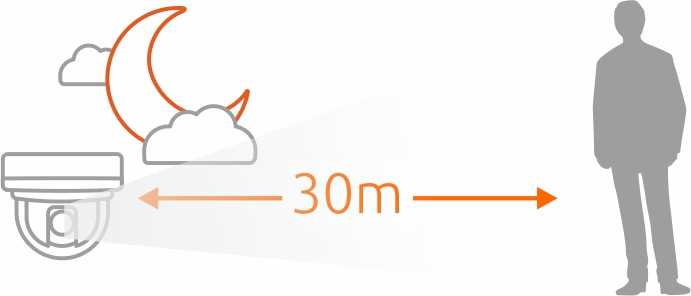 Kamera posiada wbudowany oświetlacz podczerwieni, o skutecznym zasięgu wynoszącym do 30 m. Dzięki niemu może ona poprawienie pracować w nocy, w warunkach słabego oświetlenia, a nawet całkowitej ciemności. Oświetlacz podczerwieni uruchamia się automatycznie, gdy kamera przełącza się w tryb nocny. Dodatkową zaleta kamer serii BCS POINT jest możliwość regulacji mocy świecenia promiennika IR. Właściwie dobrana moc oświetlacza daje gwarancję, że obserwowane obiekty nie będą ani prześwietlone, ani niedoświetlone.