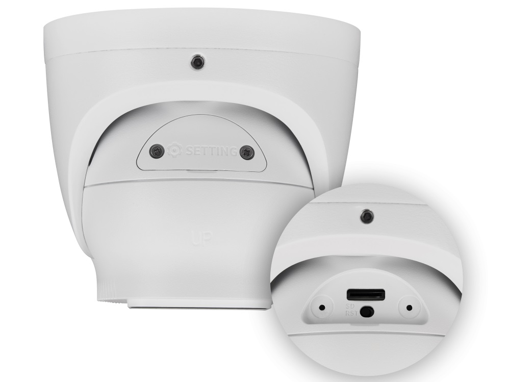 Kamera posiada wbudowane gniazdo na kartę microSD, o maksymalnej pojemności 512 GB. Karta służy jako zapasowe miejsce pamięci, które można wykorzystać do tworzenia lokalnych kopii nagrań. Dodatkowo kamera z zastosowaną kartą może pracować w pełni autonomiczne, tworząc miniaturowy system monitoringu. W takim systemie wszystkie nagrania są zapisywane na karcie i jest on obsługiwany z poziomy przeglądarki internetowej.