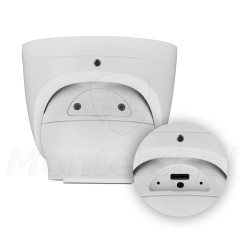 Kamera jest również wyposażona w standardowy, stałoogniskowy obiektyw, o szerokości 2.8 mm (F1.0). Zapewnia on optymalne proporcje pomiędzy zbliżeniem, a szerokością obserwowanego kadru (111° w poziomie / 63° w pionie). Dzięki czemu kamera jest uniwersalna i sprawdza się świetnie w realizacji podglądu ogólnego. Przykładowo, umieszczona w rogu stosunkowo niedużego pomieszczenia, powinna być w stanie obserwować je całe.