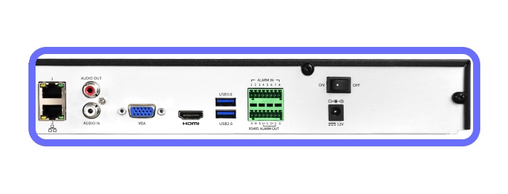 Złącza i interfejsy komunikacyjneElastyczna integracja systemu monitoringuRejestrator został wyposażony w zestaw interfejsów, które umożliwiają elastyczne podłączenie urządzeń peryferyjnych oraz integrację systemu monitoringu z innymi elementami infrastruktury. Dostępne są :