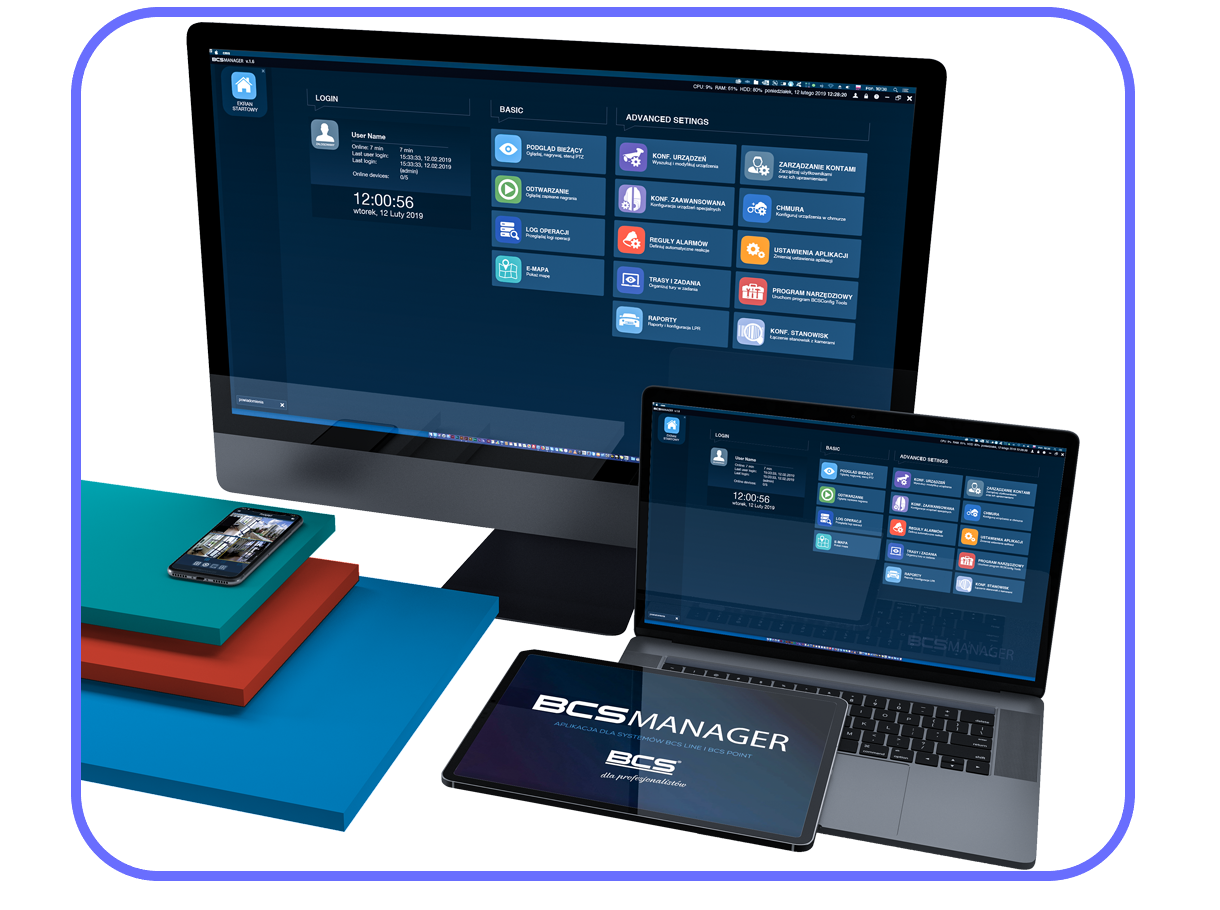 Aplikacja BCS ManagerZdalny dostęp i kontrolaRejestrator współpracuje z aplikacją BCS Manager, umożliwiając zdalne zarządzanie systemem monitoringu z poziomu komputera (Windows, Linux, MacOS) oraz urządzeń mobilnych (iOS, Android).