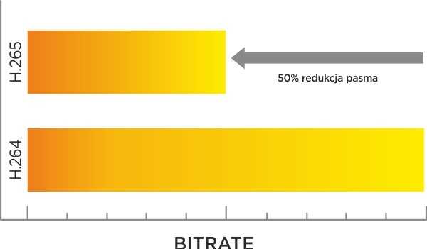Dużą zaletą kamery jest obsługa zaawansowanej kompresji obrazu H.265. Wykorzystuje ona udoskonalony algorytm H.264, który umożliwia nawet dwukrotnie mocniejszą kompresję, przy praktycznie niezmienionej jakości obrazu. W konsekwencji czego możliwa jest archiwizacja nagrań z jeszcze dłuższego okresu i zmniejszają się wymagania dotyczące przepustowości łącza podczas pracy zdalnej. Dostępne kompresje obrazu: