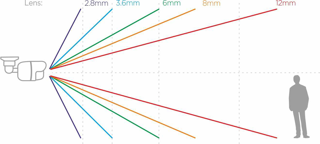 Do budowy kamery wykorzystano również stałoogniskowy obiektyw, o szerokości 2.8 mm (F2.0). Zapewnia on szeroki kąt widzenia (106° w poziomie / 56° w pionie), dzięki któremu kamera sprawdza się świetnie w realizacji funkcji podglądu ogólnego. Przykładowo można ją wykorzystać do obserwacji wjazdu na plac lub wejścia do sklepu.