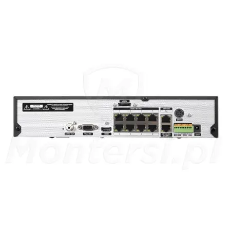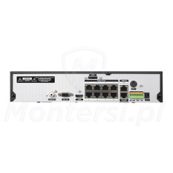 Cechą charakterystyczną rejestratora jest wbudowany 8-portowy switch PoE 802.3af/at. Dzięki niemu możliwa jest jednoczesna transmisja danych i zasilanie podłączonych kamer PoE po tym samym kablu UTP. Do największych zalet technologii Power over Ethernet można zaliczyć: