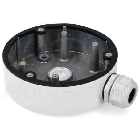 BCS-V-ADE - Puszka montażowa, umożliwiająca ścienny lub sufitowy montaż kamer kopułkowych BCS VIEW. Do jej cech charakterystycznych można zaliczyć: