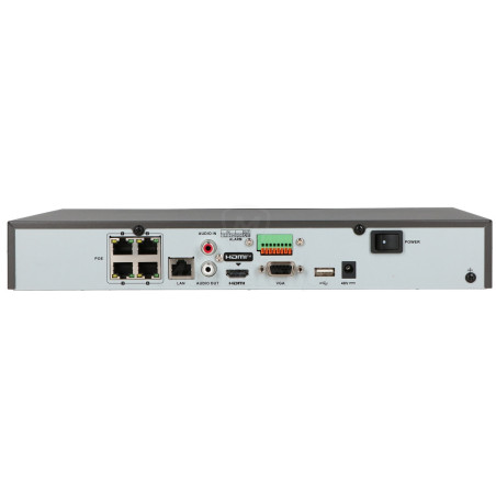 BCS-V-NVR0401-A-4KE-4P(2) - 4-kanałowy rejestrator IP, dedykowany do pracy w niewielkim systemie monitoringu. Do jego cech charakterystycznych można zaliczyć: