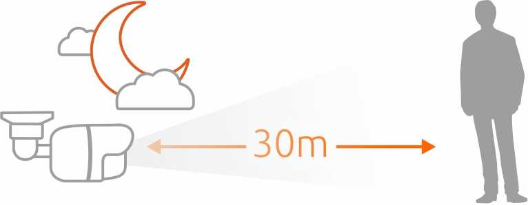 Kamera jest wyposażona w standardowy oświetlacz podczerwieni, o skutecznym zasięgu wynoszącym 30 m. Dzięki niemu może ona poprawnie pracować w nocy, w warunkach słabego oświetlenia a nawet całkowitej ciemności. Oświetlacz uruchamia się automatycznie gdy natężenie światła dziennego spadnie poniżej pewnego poziomu i uruchomi się tryb nocny.