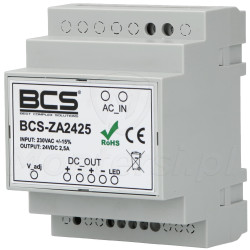 Zasilacz impulsowy 24V DC, polecany do współpracy ze switchem systemu wideodomofonowego BCS-SP06. Zasilacz został wyposażony w liczne zabezpieczenia i cechuje się bardzo dobrymi parametrami pracy - BCS-ZA2425 może zasilać jednocześnie 2 urządzenia elektryczne, o łącznym poborze prądu maksymalnie 2.5 A.