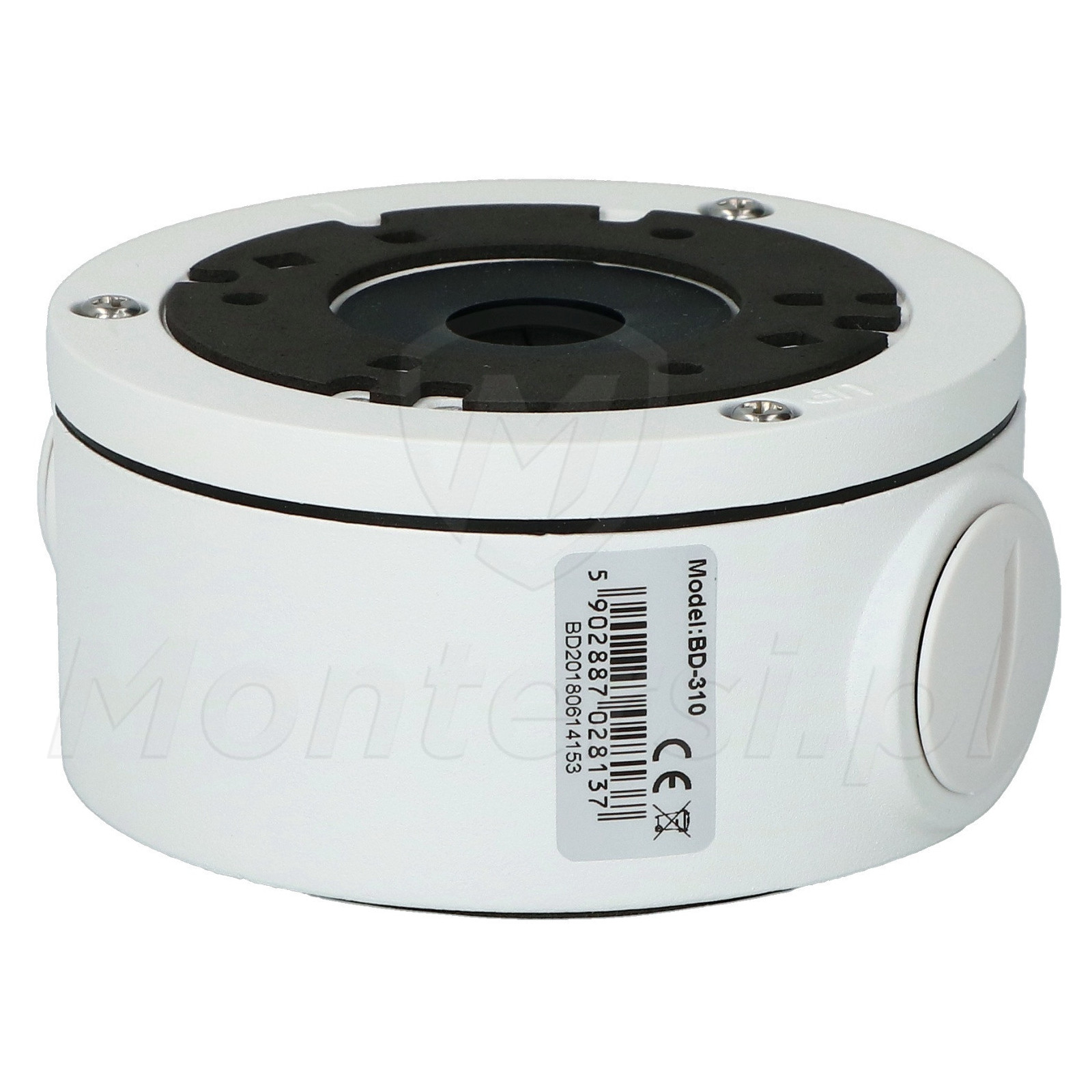 BD-310 - Uniwersalny uchwyt przeznaczony do instalacji kamer. Wykonany z aluminium gwarantuje stabilny i mocny chwyt kamery. Wewnątrz puszki można schować nadmiar przewodów połączeniowych co zapewni estetyczny wygląd instalacji. Do najważniejszych cech uchwytu można zaliczyć: