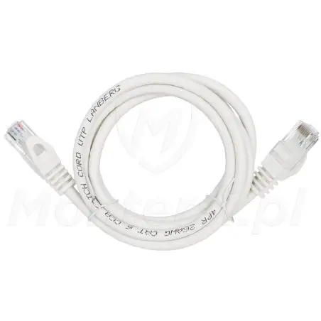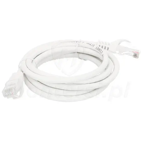 Biały kabel połączeniowy U/UTP cat. 6, o długości 1 m. Uniwersalny i niezawodny, umożliwia łatwe łączenie ze sobą elementów systemu monitoringu IP lub urządzeń sieci LAN.