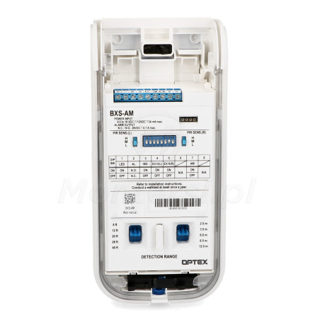 - Możliwość regulacji zasięgu (2.5 - 12 m) i czułości czujki