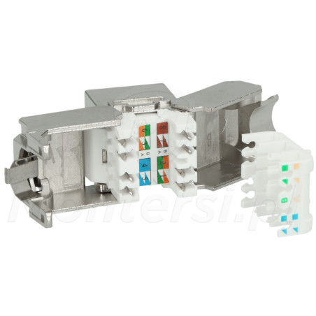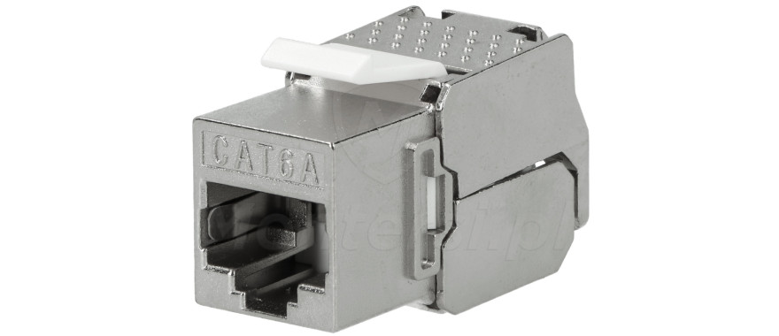 CCAS-K6A-STP - Moduł kategorii 6 przeznaczony do zabudowy w pustych panelach patchpanel oraz gniazdach przyłączeniowych. Służy do budowy punktów abonenckich jak i pół krosowych w wewnętrznych instalacjach poziomych i pionowych. Stosowany jest w sieciach teleinformatycznych, które narożone są na oddziaływanie zakłóceń elektromagnetycznych. Z tyłu modułu zastosowano wygodny w podłączeniu panel LSA. Dzięki zastosowaniu systemu montażowego "keystone", mamy gwarancję kompatybilności z gniazdami różnych producentów. Jej montaż zalecany w instalacjach, które nie są narażone na zakłócenia elektromagnetyczne. Do jego zalet można zaliczyć: