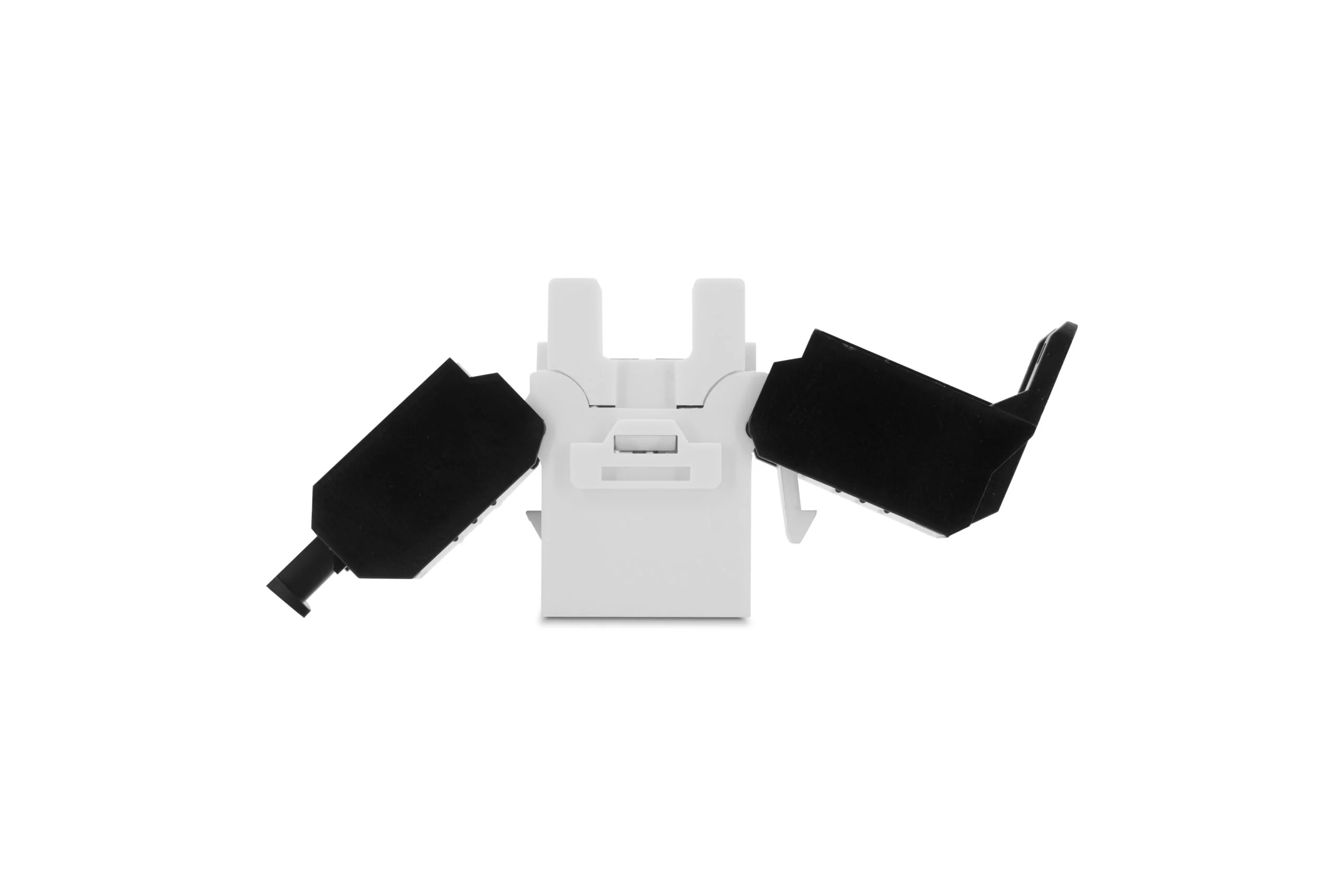 Moduł keystone pozwala na zakończenie żył kabla bez użycia wciskacza LSA (noża Krone), co znacząco skraca czas instalacji. Dzięki ergonomicznej budowie możliwy jest montaż bezpośrednio w dłoniach – szybko, łatwo i bez potrzeby użycia specjalistycznych narzędzi. To praktyczne rozwiązanie w gniazdach przyłączeniowych oraz pustych panelach montażowych.