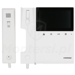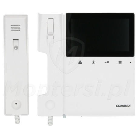 CDV-43K2(DC) - Monitor słuchawkowy, przystosowany do pracy w systemie wideodomofonu analogowego COMMAX. Zbudowany z dobrej jakości komponentów, cechuje się niezawodnością i stabilnymi parametrami pracy przez wiele lat. Do elementów wyróżniających monitora można zaliczyć: