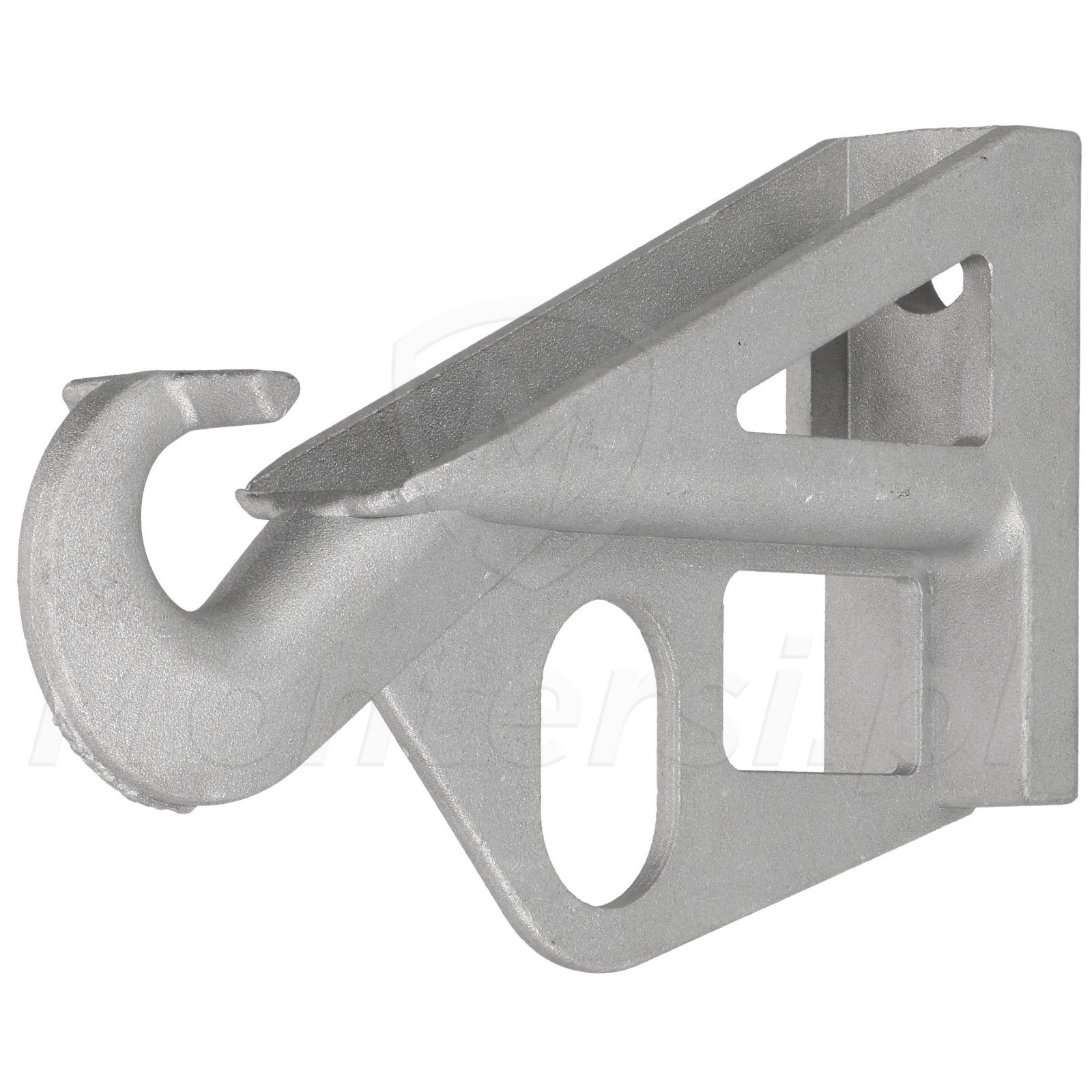 CS 100 - Wspornik słupowy przeznaczony do montażu komponentów sieci napowietrznych. Wykonany ze stopów aluminium charakteryzuje się małą wagą oraz sporą wytrzymałością. Wspornik montowany do słupa jest dwoma taśmami stalowymi o szerokości 20 mm lub jedną śrubą.