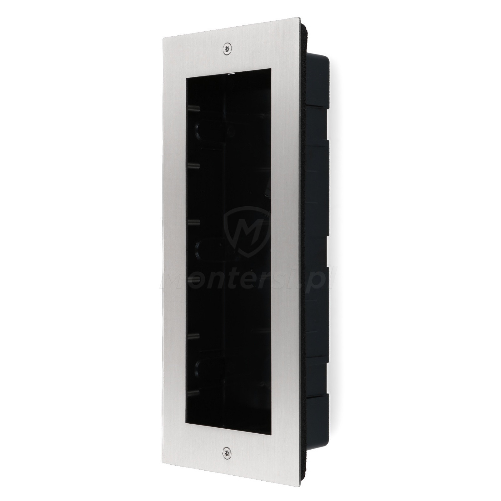 D1510-3P - Podtynkowa ramka montażowa, dedykowana do montażu 3 modułów systemu Vidos Duo Multi. Ramka cechuje się solidnym wykonaniem i eleganckim designem, dzięki któremu można ją z łatwością wkomponować do praktycznie dowolnego miejsca. Do cech charakterystycznych ramki D1510-3P można zaliczyć: