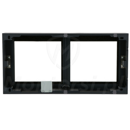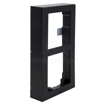 D2100-2 - Ramka montażowa do modułów Vidos ONE. Ramka przeznaczona jest do montażu dwóch modułów wchodzącego w skład systemu wideodomofonów IP Vidos ONE. Wykonana została z odpornego i wytrzymałego aluminium w kolorze ciemnego grafitu. Nowoczesny design zapewnia estetyczny wygląd ramki wraz z modułem.