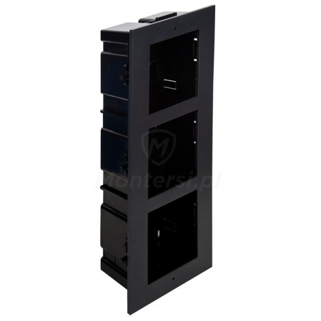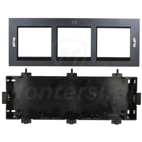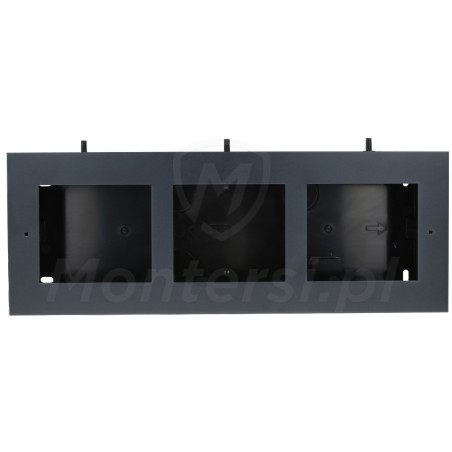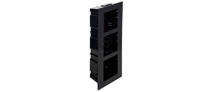 D2200-3 - Ramka z puszką do montażu podtynkowego przeznaczona do modułów wideodomofonu Vidos ONE. Ramka przeznaczona jest do montażu trzech modułów wchodzących w skład systemu wideodomofonów Vidos ONE. Wykonana została z odpornego i wytrzymałego aluminium. Nowoczesny design zapewnia estetyczny wygląd ramki wraz z modułem.