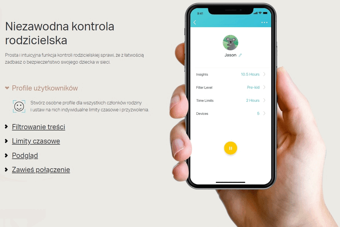 Do zarządzania i konfiguracji urządzenia służy aplikacja na smartfony. Dzięki niej urządzeniem możemy sterować nawet będąc poza miejscem instalacji urządzenia. W aplikacji możemy przeprowadzić weryfikację podłączonych urządzeń, przydzielić im priorytety czy skonfigurować osobna sieć dla gości.