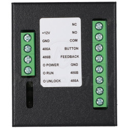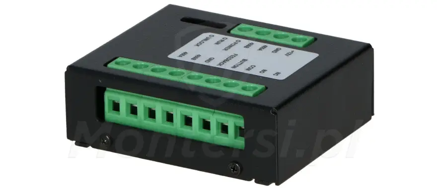Moduł wyposażony jest w porty umożliwiające podłączenie przycisku wyjścia, detektora stanu drzwi oraz sterowanie zamkiem. Obsługuje zarówno zamki elektromagnetyczne, jak i elektrozaczepy. Pozwala to na precyzyjne kontrolowanie fizycznego dostępu do stref chronionych. Informacje o stanie drzwi i aktywacji przycisku przekazywane są do głównego systemu w czasie rzeczywistym.