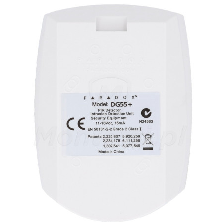 DG55+ - Pasywna czujka podczerwieni, dedykowana do pracy w warunkach wewnętrznych. Do jej elementów wyróżniających można zaliczyć: