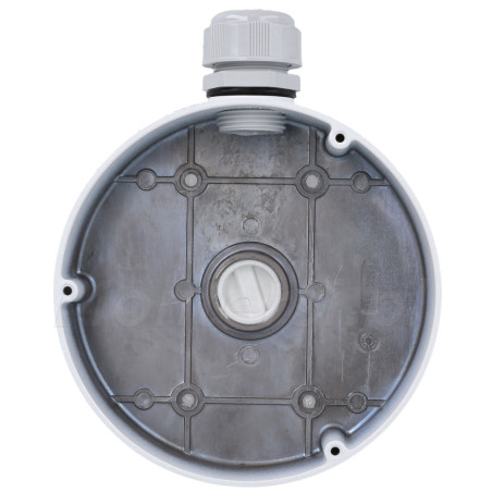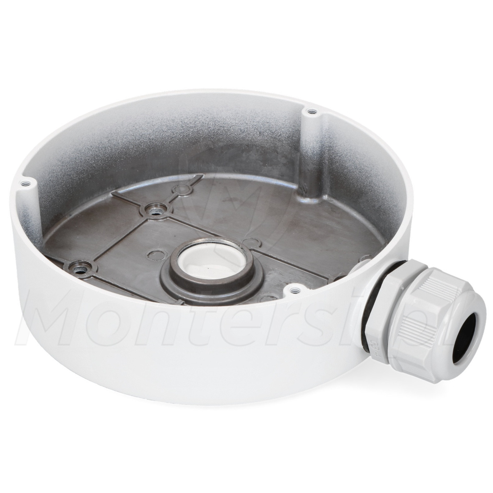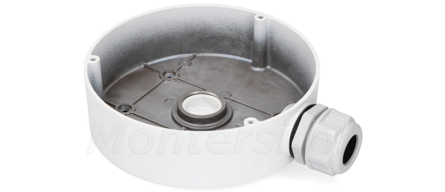 DS-1280ZJ-DM45 - Sufitowa puszka montażowa do kamer kopułkowych Hikvision. Posiada dławice umożliwiającą szczelne wyprowadzenie przewodów i przestrzeń na ukrycie ich nadmiaru.