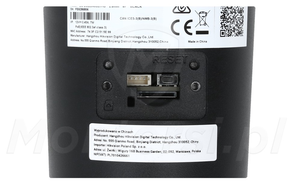 Kamera jest również wyposażona w gniazdo na kartę microSD, o maksymalnej pojemności 512 GB. Karta służy jako zapasowe miejsce pamięci, które można wykorzystać do tworzenia lokalnych kopii nagrań. Dodatkowo kamera z zastosowaną kartą może pracować w pełni autonomiczne, tworząc miniaturowy system monitoringu. W takim systemie wszystkie nagrania są zapisywane na karcie i jest on obsługiwany z poziomu przeglądarki internetowej.
