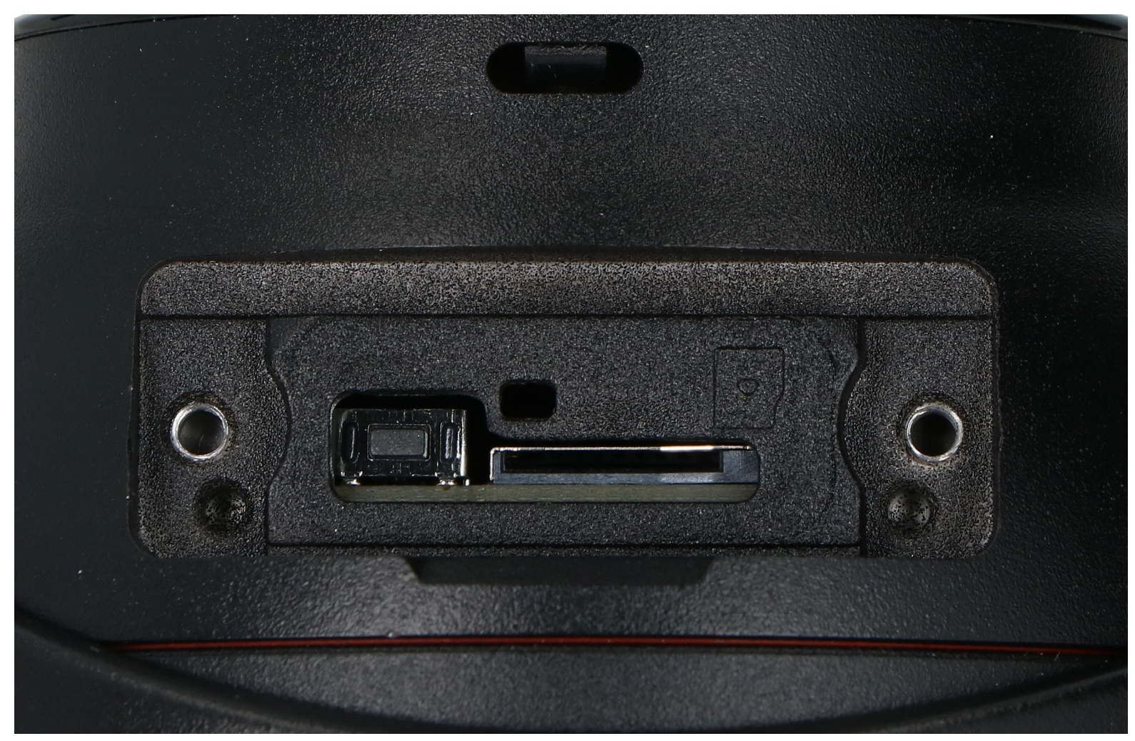 Kamera jest również wyposażona w gniazdo na kartę microSD, o maksymalnej pojemności 512 GB. Karta służy jako zapasowe miejsce pamięci, które można wykorzystać do tworzenia lokalnych kopii nagrań. Dodatkowo kamera z zastosowaną kartą może pracować w pełni autonomiczne, tworząc miniaturowy system monitoringu. W takim systemie wszystkie nagrania są zapisywane na karcie i jest on obsługiwany z poziomu przeglądarki internetowej.