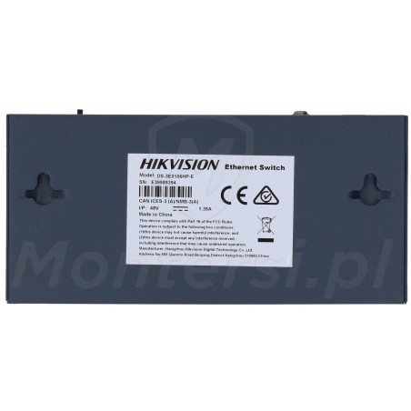 Model DDS-3E0106HP-E posiada wbudowane 4 porty PoE w standardzie 802.3af i 802.3at (PoE / PoE+). Służą one zarówno do transmisji danych i zasilania podłączonych kamer PoE, po tym samym kablu UTP.