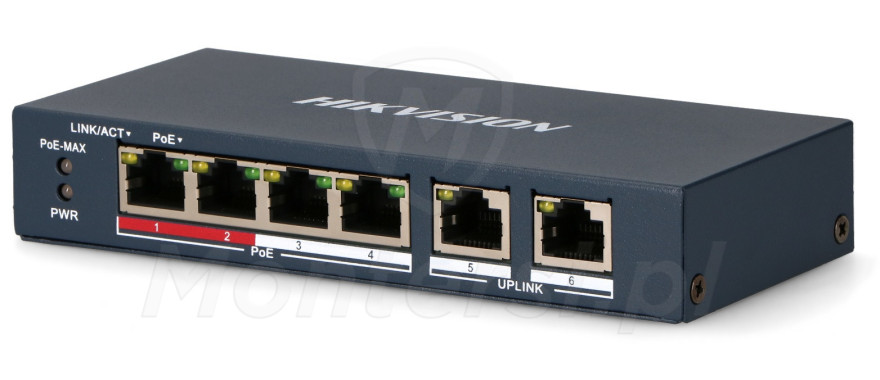 DS-3E0106P-E/M - 6-portowy przełącznik sieciowy, dedykowany do pracy w systemie monitoringu IP. Uniwersalny i niezawodny, umożliwia transmisję danych i realizację zasilania 4 dowolnych kamer IP PoE. Cechuje się on również wysoką funkcjonalnością i stabilnymi parametrami pracy ciągłej.