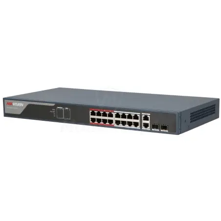 DS-3E1318P-EI (B) - 18-portowy przełącznik sieciowy, dedykowany do pracy w systemie monitoringu IP. Uniwersalny i niezawodny, umożliwia transmisję danych i realizację zasilania 16 dowolnych kamer IP PoE. Cechuje się on również wysoką funkcjonalnością i stabilnymi parametrami pracy ciągłej.