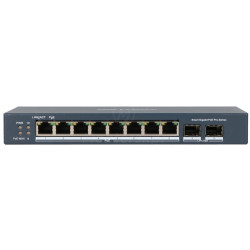 - Wbudowane 8 portów PoE 802.3af / 802.3at, służące do podłączenia kamer (10 / 100 / 1000 Mb/s)