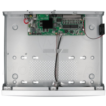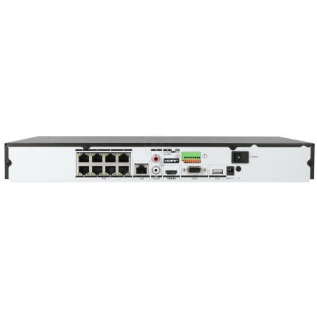 Cechą charakterystyczną rejestratora jest wbudowany 8-portowy switch PoE 802.3af/at, o max. budżecie mocy 80 W. Dzięki niemu możliwa jest jednoczesna transmisja danych i zasilanie podłączonych kamer PoE po tym samym kablu UTP. Do największych zalet technologii Power over Ethernet można zaliczyć: