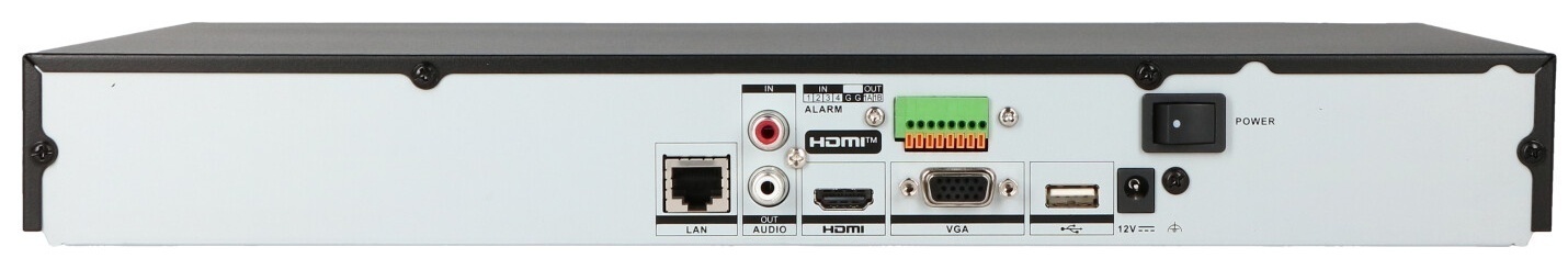 Rejestrator posiada wbudowane standardowe wyjścia wideo HDMI i VGA. Dzięki nim rejestrator można podłączyć do praktycznie każdego współczesnego monitora lub telewizora. Rozdzielczość wyświetlanego obrazu na wyjściach wynosi odpowiednio: