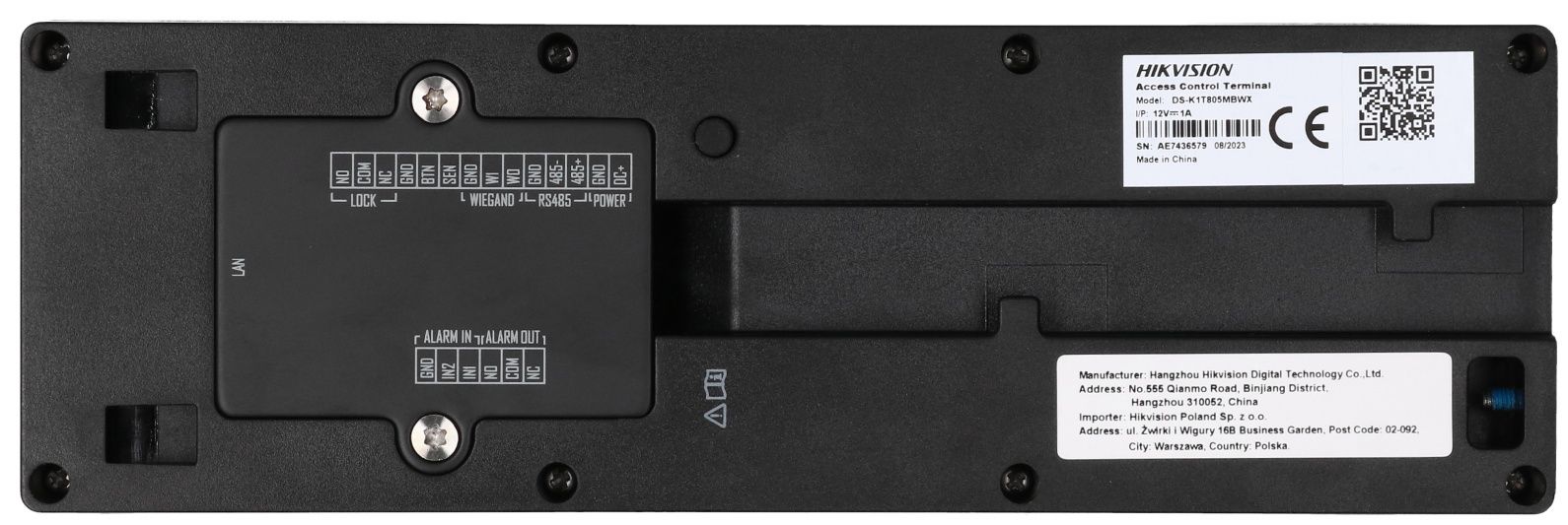 DS-K1T805MBWX został również wyposażony w interfejs pozwalający na podłączenie urządzeń zwiększających jego użyteczność. Do dyspozycji mamy:
