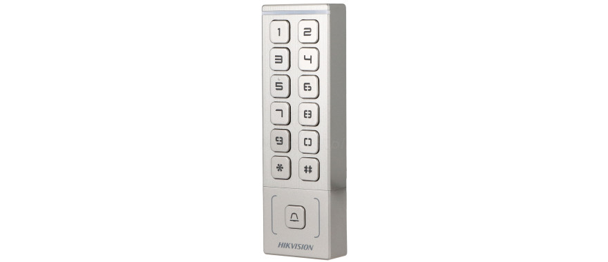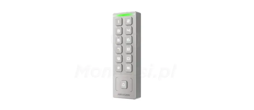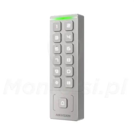 Model DS-K1T809MWX to autonomiczny terminal kontroli dostępu, wyposażony w czytnik kart MIFARE oraz fizyczną klawiaturę PIN. Został zaprojektowany z myślą o prostych instalacjach, gdzie wymagana jest szybka autoryzacja użytkowników. Dzięki kompaktowej obudowie i odporności środowiskowej sprawdza się zarówno wewnątrz, jak i na zewnątrz budynków. Wbudowana obsługa Wi-Fi oraz tryb punktu dostępowego AP umożliwiają zdalną konfigurację przez przeglądarkę mobilną.