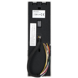 Model DS-K1T809MX wyposażony jest w wyjście Wiegand (26/34), co umożliwia jego współpracę z szeroką gamą central kontroli dostępu. Nie posiada wbudowanego modułu Wi-Fi, ani portu RJ-45 czy RS-485 – komunikacja odbywa się wyłącznie przez Wiegand OUT. Ograniczona liczba interfejsów świadczy o przeznaczeniu urządzenia głównie do prostych, lokalnych systemów. Niemniej jednak, jego kompatybilność z Wiegand zapewnia wszechstronność zastosowań.