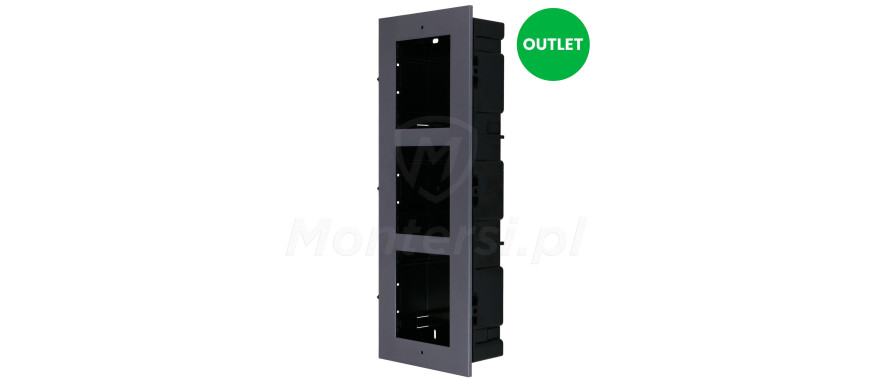 DS-KD-ACF3 - Ramka z puszką do montażu podtynkowego do modułów HikVision. Ramka przeznaczona jest do montażu trzech modułów wchodzących w skład systemu wideodomofonów HikVision. Wykonana została z odpornego i wytrzymałego aluminium. Nowoczesny design zapewnia estetyczny wygląd ramki wraz z modułem.