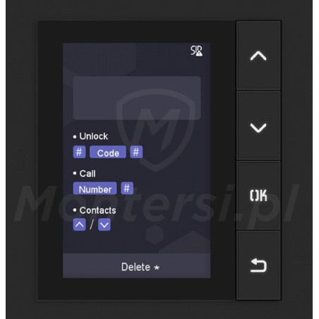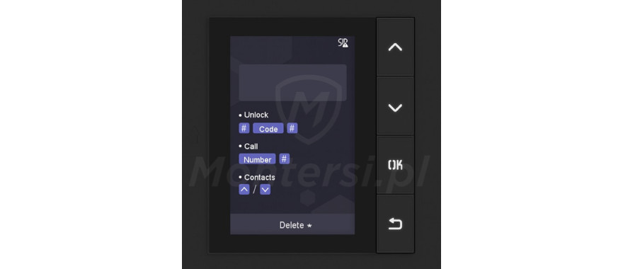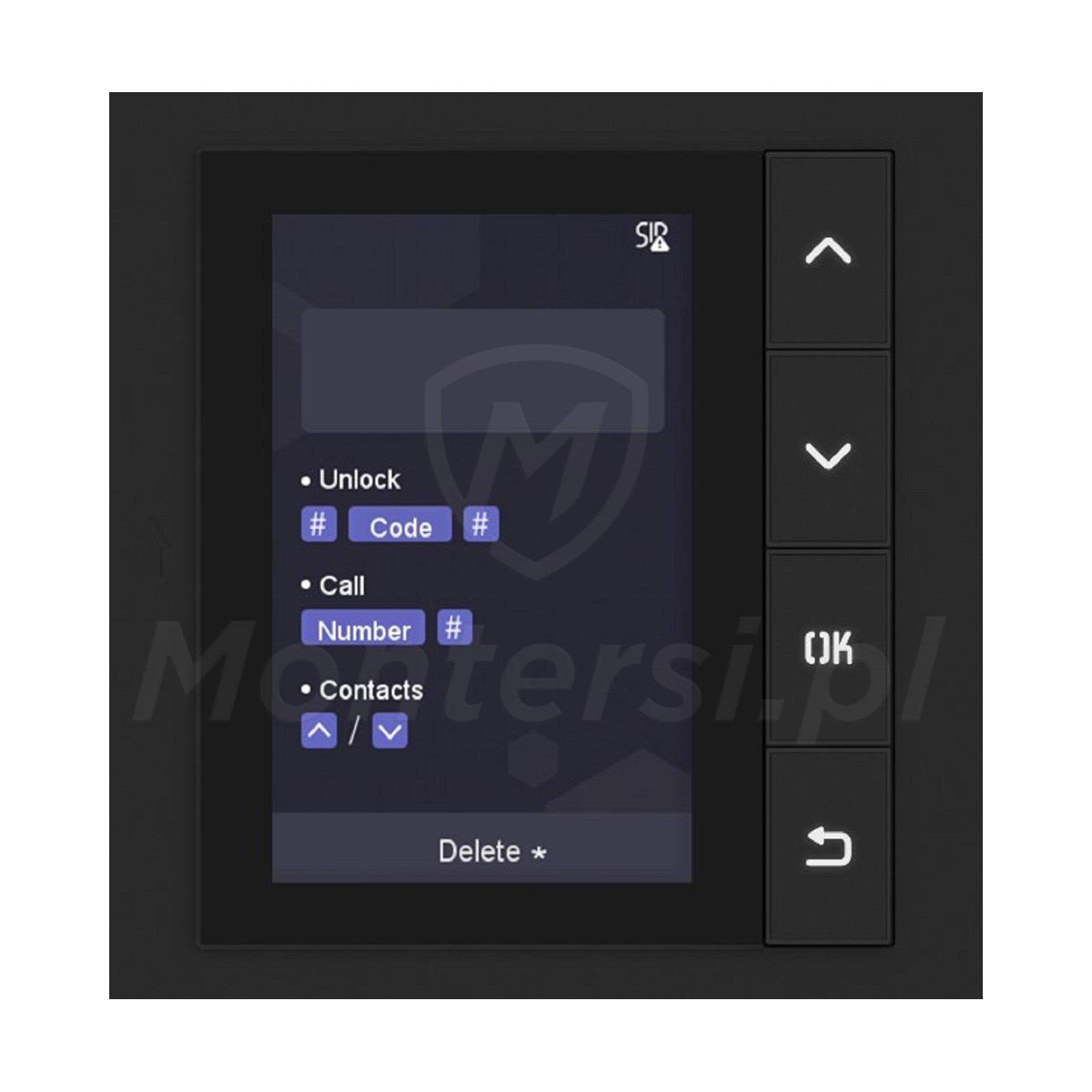 Urządzenie zostało wyposażone w 3.5" wyświetlacz wykonany w technologii TFT. Charakteryzuje się rozdzielczością 320 x 480 pikseli co pozwala na czytelne wyświetlenie przedstawianych treści. Moduł może wyświetlić informacje o czasie połączenia, otwarciu drzwi, listę lokatorów oraz pozwoli na nawiązanie połączenia z wewnętrzną stacją bezpośrednio z listy wyświetlanej na ekranie. Urządzenie może zapisać w pamięci nawet 2000 lokatorów.