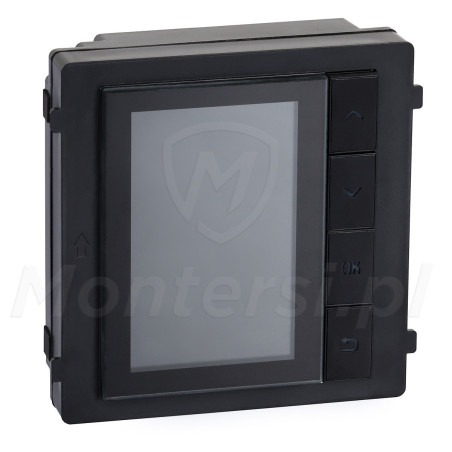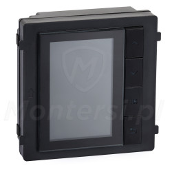 DS-KD-DIS - Moduł wyświetlacza kolorowego przeznaczony do współpracy z II generacją wideodomofonów marki Hikvision. Urządzenie wyposażone w 4 fizyczne przyciski nawigacyjne oraz 3.5" wyświetlacz mogący wyświetlać informacje o czasie trwania połączenia, liście lokatorskiej czy otwarciu drzwi. Obudowa wykonana z wysokiej jakości materiałów charakteryzuje się szczelnością na poziomie IP65.