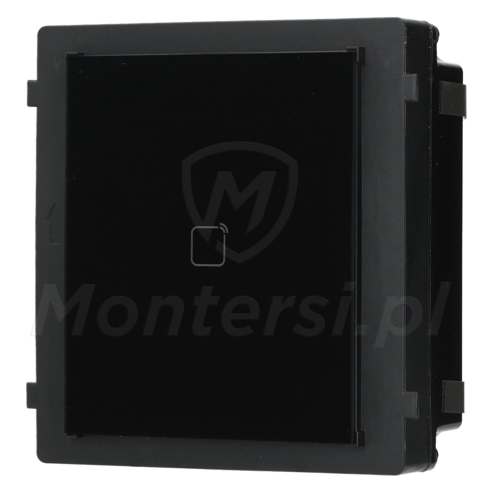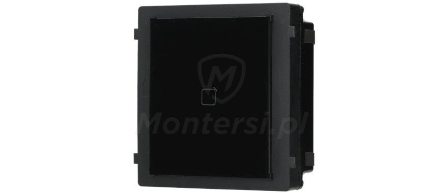 DS-KD-E - Moduł czytnika kart Uniqie (125 KHz). Moduł pozwalający rozszerzyć funkcje wideodomofonu HikVision o możliwość sterowania kartami Unique. Moduł pozwala na realizacje funkcji kontroli dostępu. Każdy użytkownik posiadający kartę, brelok lub inny klucz dostępu zgodny ze standardem Unique może dokonać samodzielnej autoryzacji i uzyskać dostęp. Wbudowane podświetlenie LED pozwala na komfortową obsługę w ciemności. Obudowa została wykonana na wysokim poziomie i posiada klasę szczelności IP65